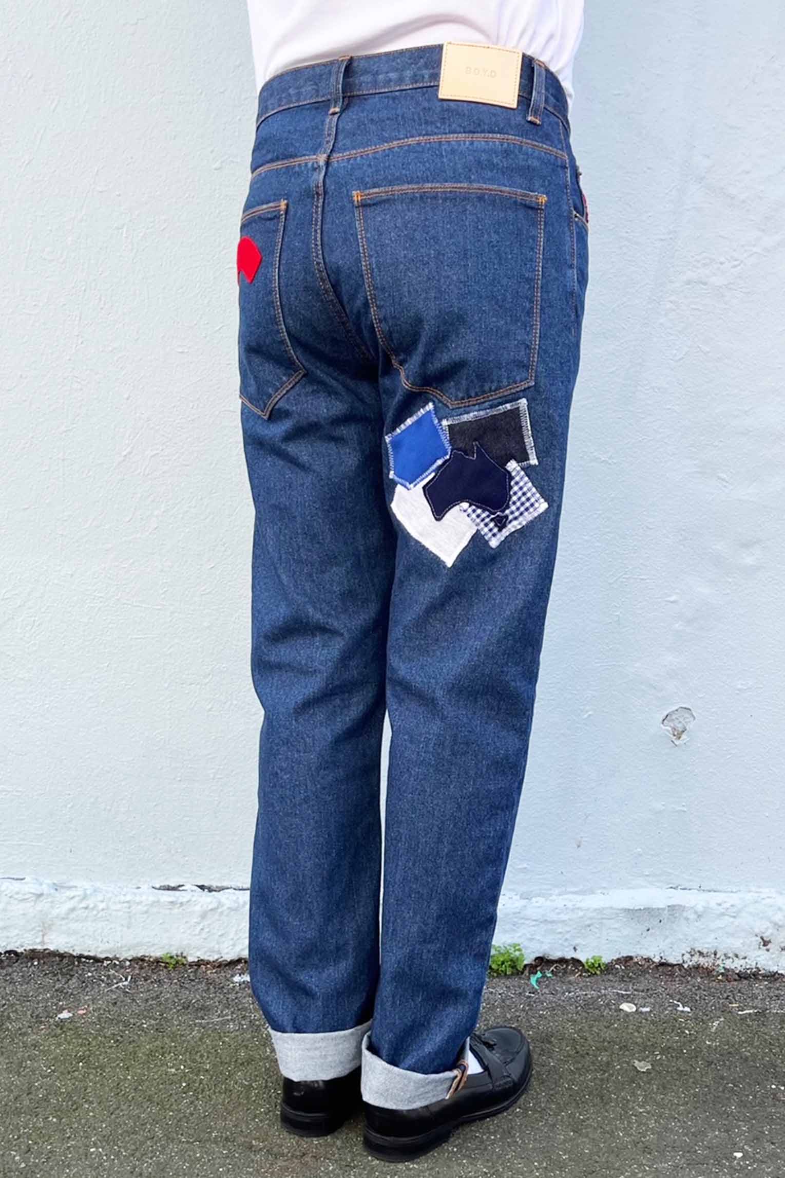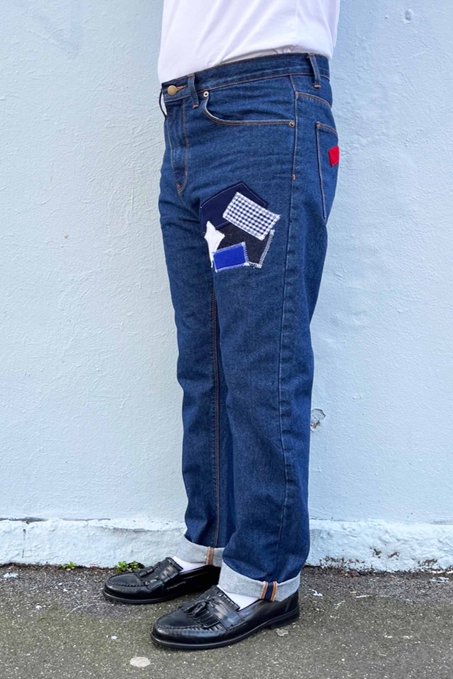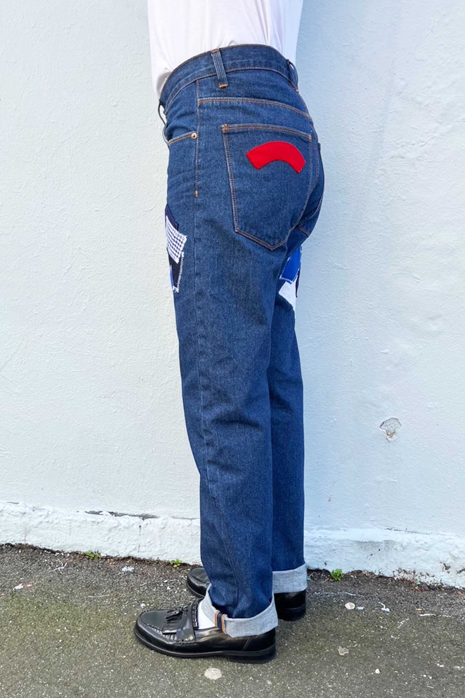 CUSTOM HAND PATCHED DENIM. MADE TO ORDER. 2 WEEK TURNAROUND.